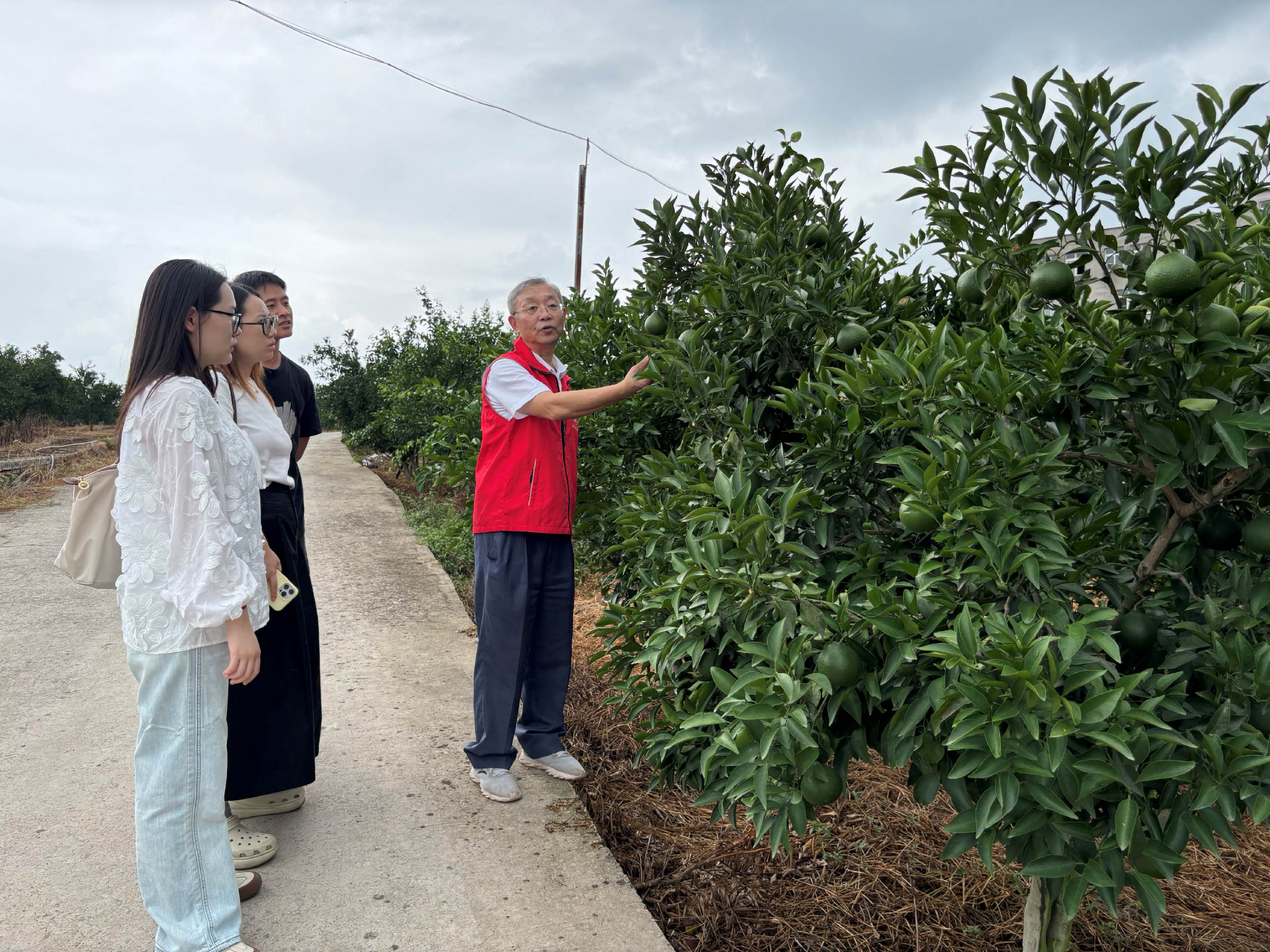 2025年9月8日,重庆市科技特派员、76net必赢官网执行院长肖亚成教授带领团队学生前往重庆市长寿区龙河镇河堰村重庆益恒农业开发有限公司,开展柑桔种植技术与管理实地教学活动。