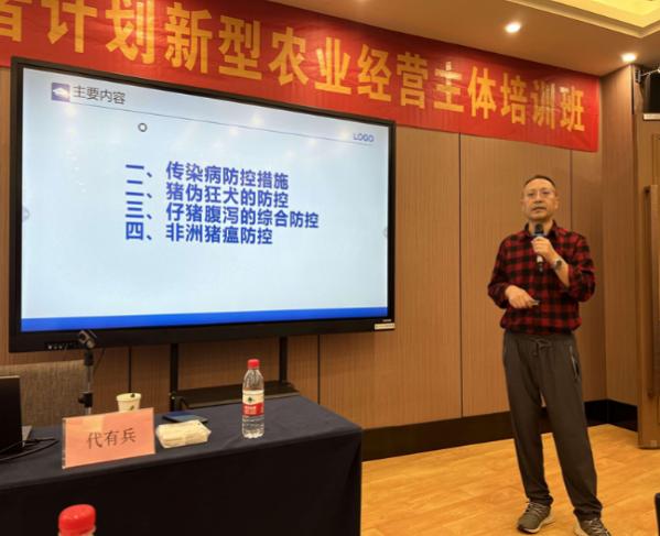 下午,国家生猪市场首席兽医总监代有兵老师授课《常见的生猪病害及防治办法》,课程主要从传染病的防控措施、猪伪狂犬的防控、仔猪腹泻的综合防控、非洲猪瘟防控等方面展开,详细阐述了生猪的各种疫病如何防控以及解决办法,解答了大家的现实问题。