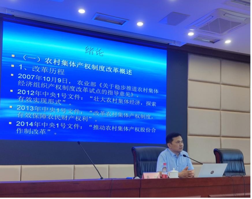 开班仪式结束后,中国人民大学博士、长寿区农业农村委二级主任科员罗士轩围绕发展壮大村集体经济进行授课。罗士轩博士表示壮大村集体经济的首要任务是认识其重要性,其次是准确把握壮大村集体经济的基本框架,最后是有效掌握发展壮大村集体经济的方法技巧,还着重阐述了集体经济与乡村治理的协同发展关系。