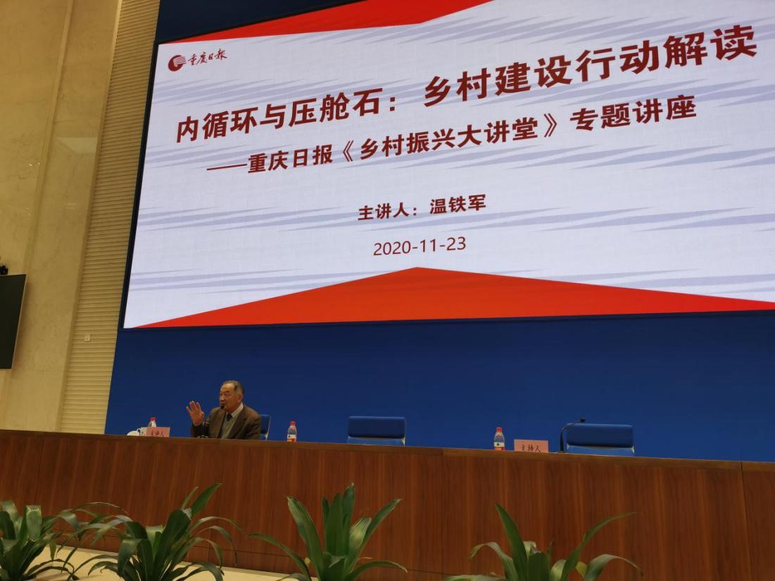 在重庆日报《乡村振兴大讲堂》中,76net必赢官网温铁军教授受邀以《内循环与压舱石:乡村建设行动解读》为题,为现场200多名听众带来了一场观点新颖、深入浅出的讲座。讲座就十九届五中全会有关“乡村建设行动”文件进行了理论与政策解读。他强调,“面对全球化危机和疫情的双重挑战,中国之所以能够保持稳定,在于我们仍然有庞大的乡村。”“乡村振兴是应对全球化挑战的压舱石。”世界格局剧烈演化过程中,乡村振兴是贯彻落实生态文明建设的重要举措和战略,乡村振兴也已成为我国推动内循环发展的重要力量。温铁军教授说,转向国内大循环为主体。怎么转?关键在于广袤乡村空间生态资源的开发上,这其中重要的政策导向就是要重构新型集体经济,利用村集体盘活乡村沉淀资产,变乡村平面资源为立体开发,生态化时代需要重构新型集体经济、做好三变改革。
