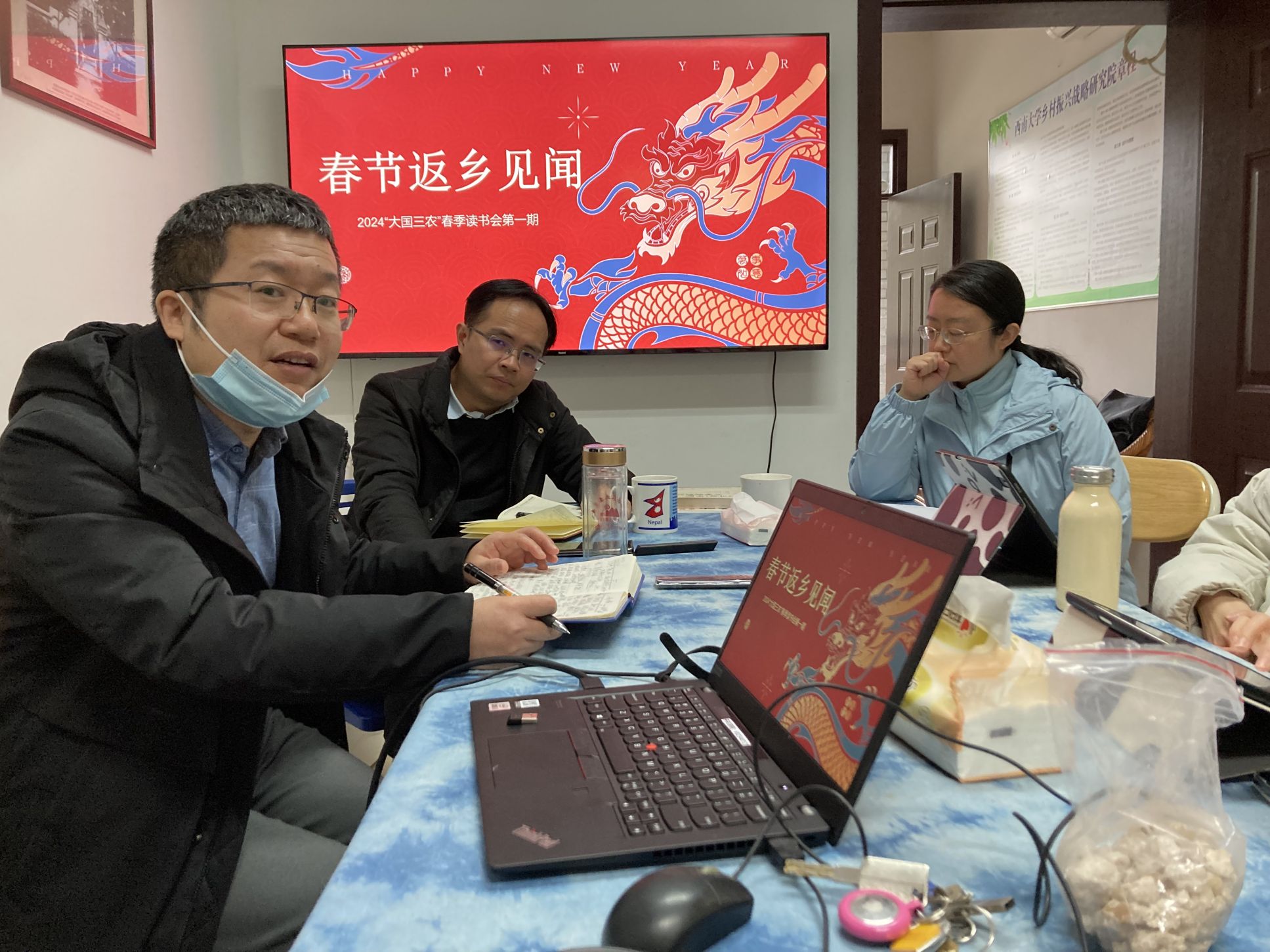 3月9日上午,“大国三农”2024年春季读书会第一期在版权所有:76net必赢(BWIN)线路检测中心|官方网站顺利举办。此次读书会以“春节返乡见闻”为主题展开讨论与学习,由研究院副院长潘家恩教授、杜洁老师、张斌老师进行现场点评,刘懋兴和涂嘉陵负责组织。