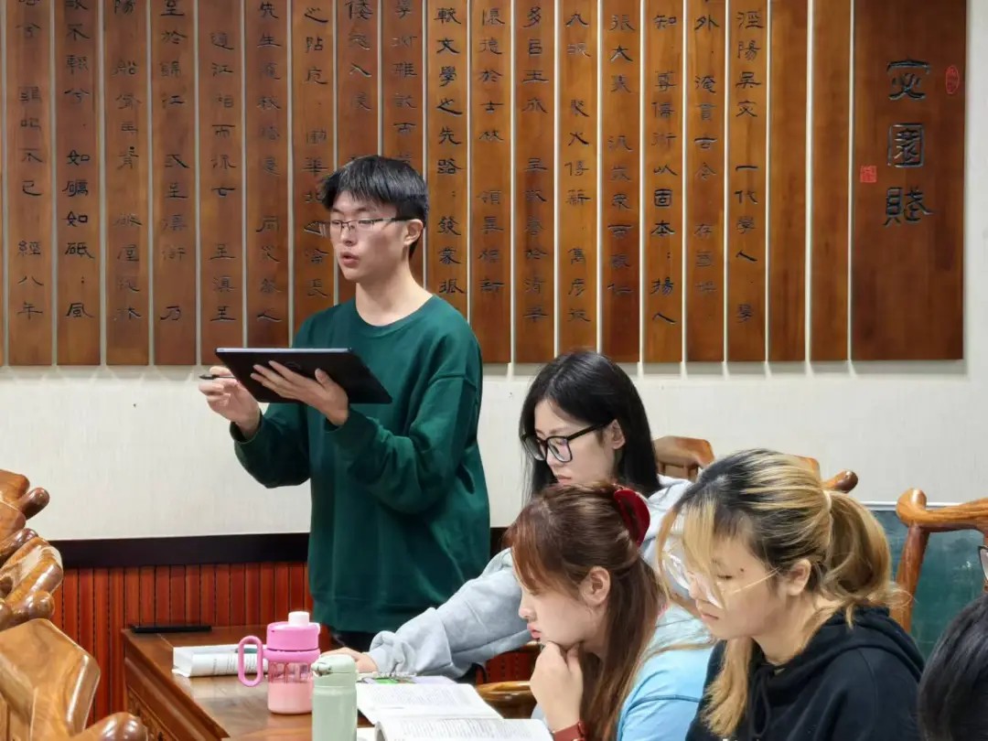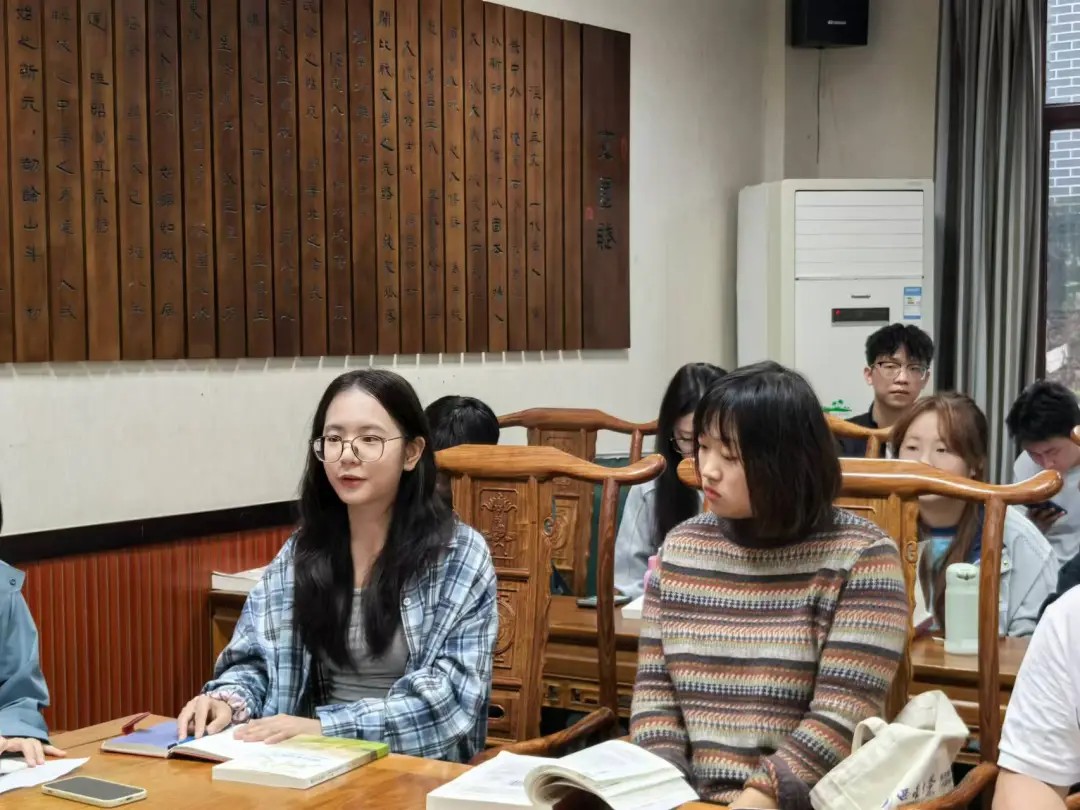 在读书会成员交流环节,同学们纷纷踊跃发言提出了自己针对本节读书会主题进行的想法和思考,在讨论交流中迸发了许多思想火花。姚博同学阐述了对生存小农和理性小农的思考;文学师范专业的李行同学从文学研究现状引出了用西方理论解释中国文学存在“不合身”的问题,并由此引申出了对以理性小农解释中国农民的再思考,同时还提出了中国人的行事方式更遵循传统的道德责任感。