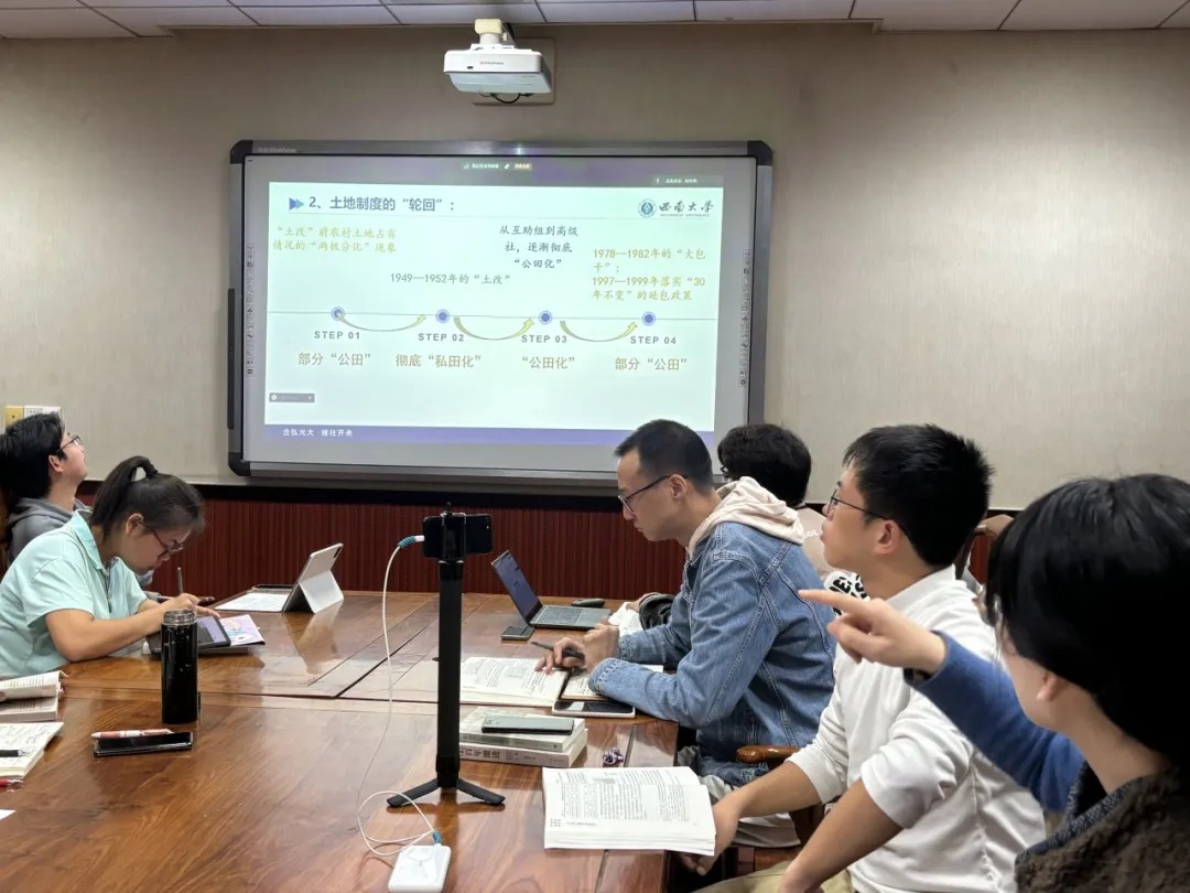 10月19日上午9:00,“大国三农”2024年秋季读书会第二期在版权所有:76net必赢(BWIN)线路检测中心|官方网站202学术会议室顺利举办。此次读书会主要就温铁军老师所著《三农问题与制度变迁》中的导言以及第一章“农业基本经济制度的理论分析”部分进行讨论和学习。76net必赢官网副院长潘家恩教授及部分老师与会并作交流发言。