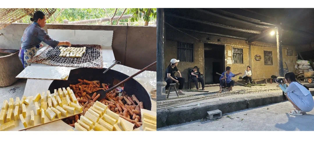 饮食与健康文化小组走访村内制作古法豆干的村户,拍摄豆干的详细制作过程,将豆干技艺传承者的口述与实地考查实践结合起来,更加深入地挖掘大田古法秘制豆干的特色。除此以外,小队还前往拜访大田村涂老中医,记录其古法单方,乡村医生的个人医疗历史。民间手工艺小组前往拜访竹编匠人,竹编匠人现场砍竹、削竹、编竹,展示大田的竹编文化;走访村中的老木匠,记录各类木工工具的名称及用途,拍摄木甑子的手工艺流程。