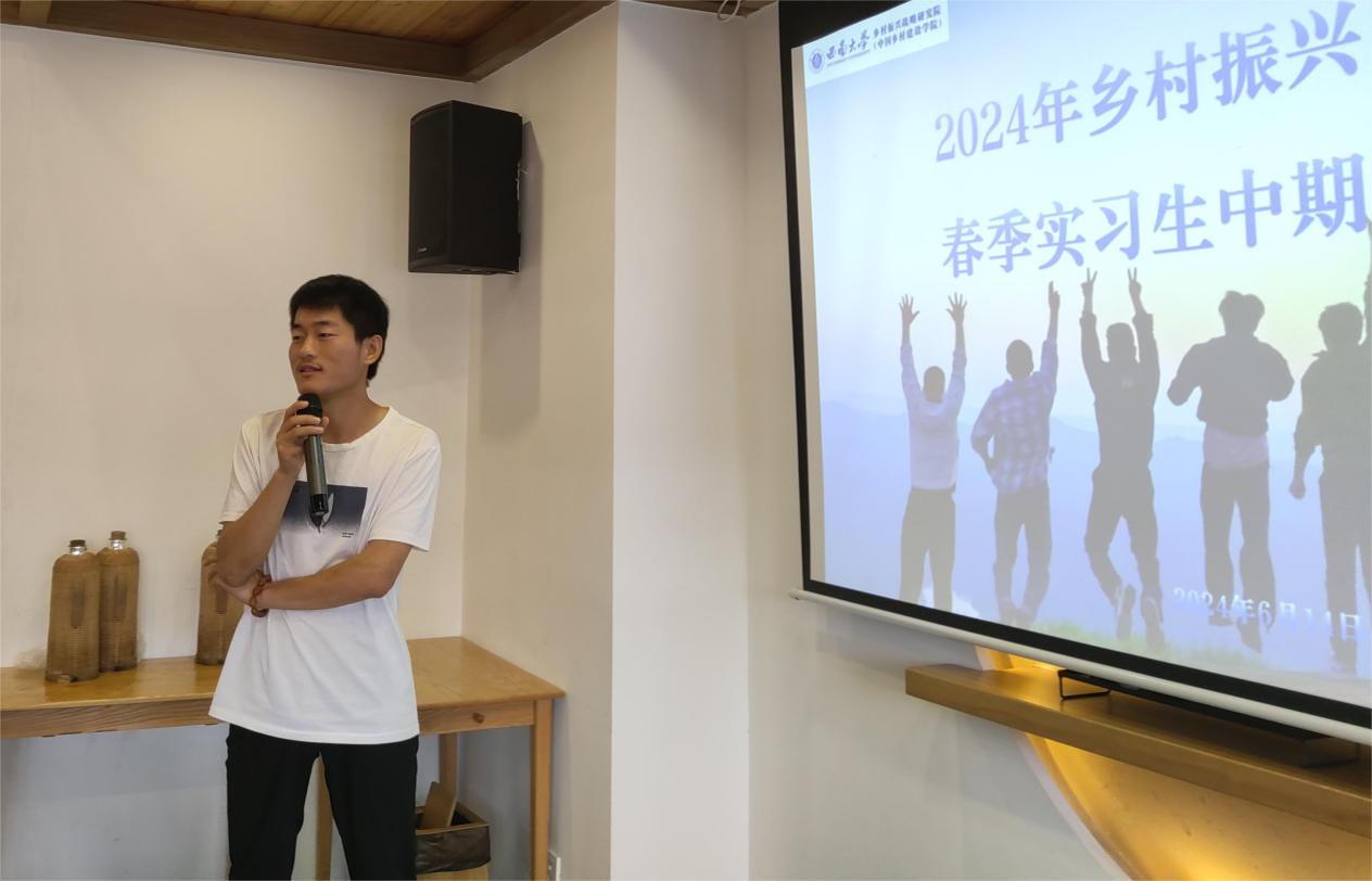 6月14日,2024年乡村振兴田间行春季实习生中期总结会在九龙坡区陶家镇清栖谷民宿顺利举办。八位来自不同院校、不同省市、不同专业的学生实习生分别在巴南区东温泉镇鱼池村、长寿区云台镇八字村、涪陵区大顺镇大顺村、南岸温铁军工作室四个实践基地开展为期6个月的乡村实习。目前,实习生们已完成三个月的乡村实习生活。此次中期总结会旨在总结实习过程中的优秀做法和不足之处,并以此调整后三个月实习内容与方向。76net必赢官网副院长潘家恩、张艺英、肖青等老师参加此次总结会并指导实习工作。总结会还邀请了重庆霖萌农业开发有限公司负责人牟道彬,为实习生分享他的返乡创业经历。