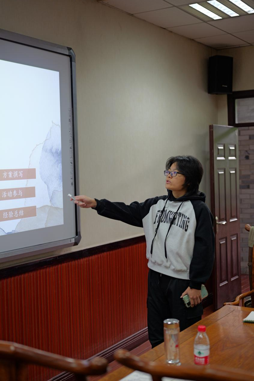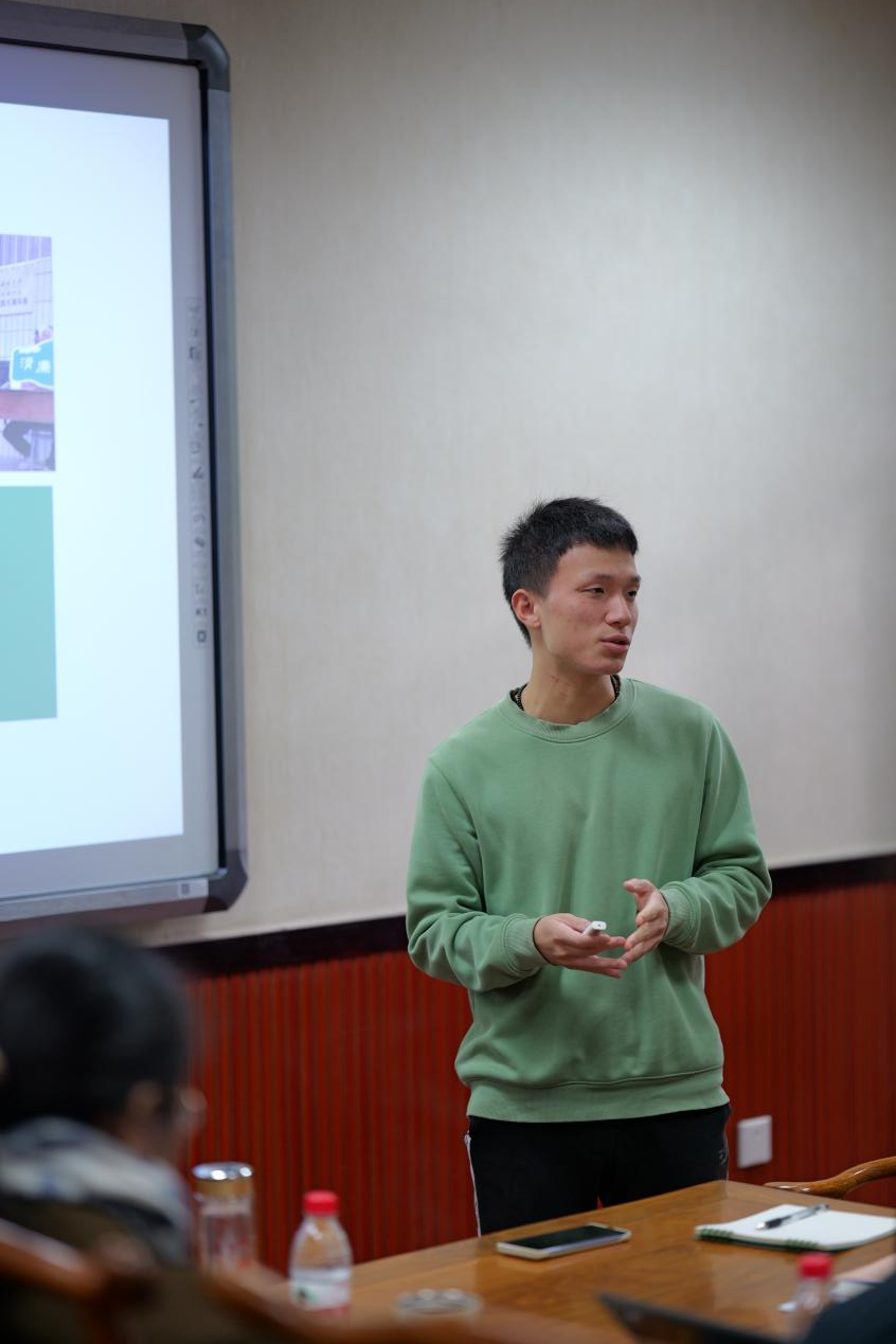 会议伊始由7名实习生分别汇报前二个月的实习工作、存在的问题、个人收获以及下一步的工作计划。南峰村小组由邹德宇、陈许栩两名实习生组成,实习地点位于四川省绵阳市三台县。在实习期间,两人主要从调研类、社区活动类、艺术项目、区域政策报告类开展工作,谈起实习感受,他们收获满满:“本次实习不仅丰富了我们对乡村的理论知识,还使我们进一步思考了自己今后的学习规划。”