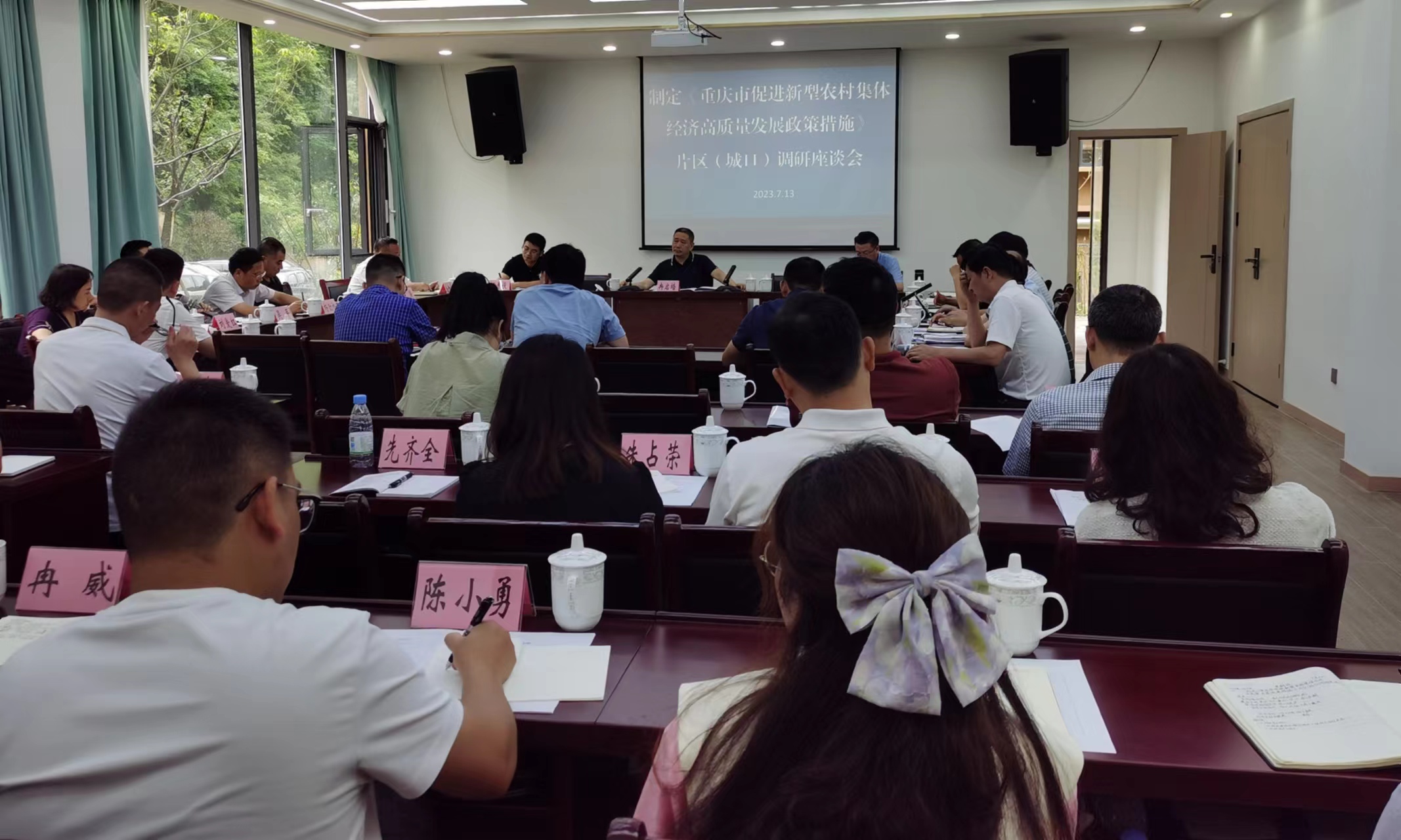 下午,调研组一行参加了由市农业农村委和城口县农业农村委主办的“重庆市促进新型农村集体经济高质量发展政策措施”调研座谈会。会上,重庆各区县相关农口干部汇报了当地集体经济发展现状、困难及发展诉求,就如何推动农村产权交易、促进农村集体经济发展这一议题展开了热烈的探讨。市农业农村委政策与改革处冉启培处长表示,发展壮大新型农村集体经济的核心是推动农村产权交易,这既是打开农村的“宝藏”和撬开城市的“金库”,也是着眼于乡村全面振兴、城乡融合发展和民族伟大复兴的现实需要。