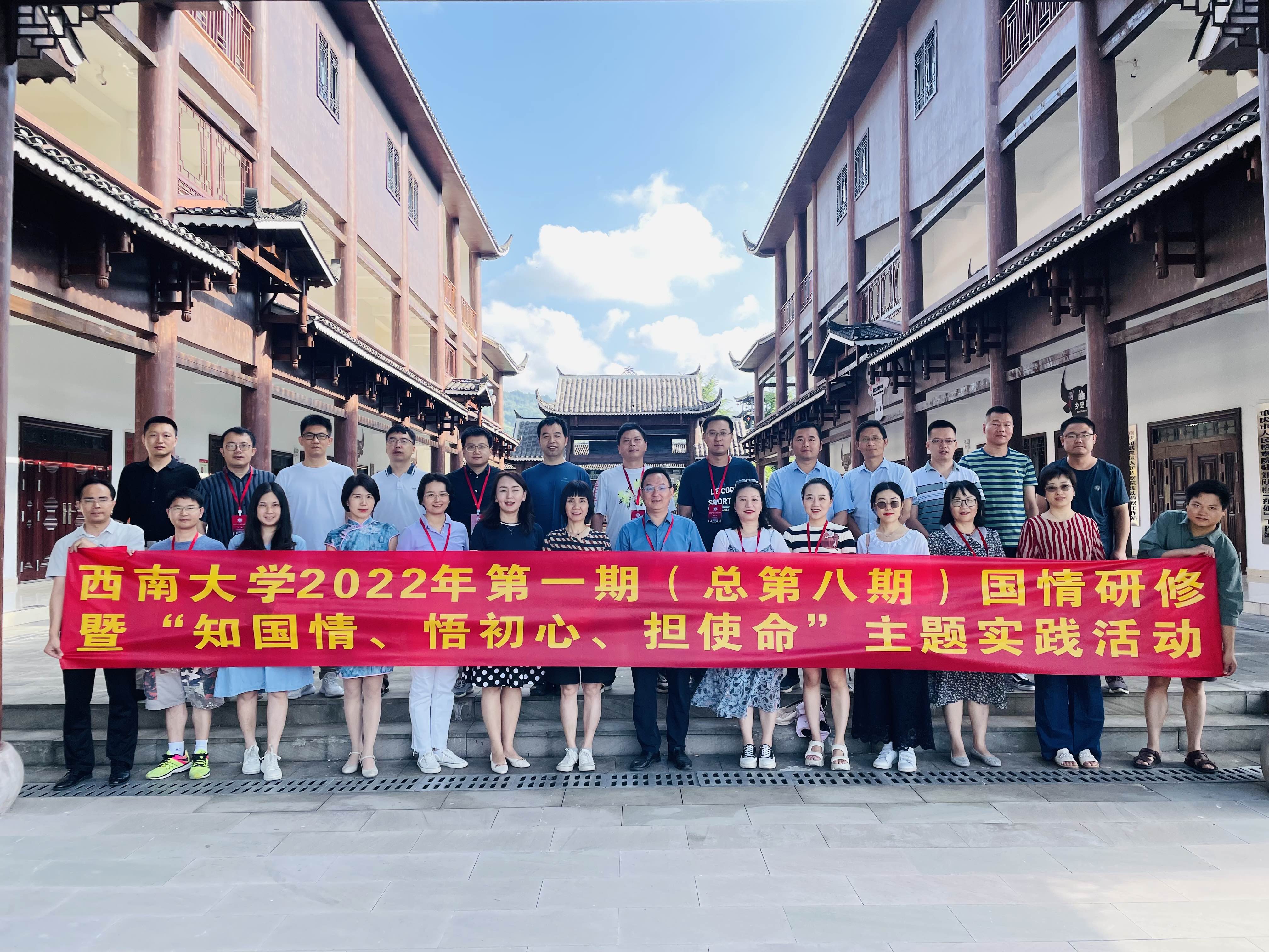 7月6-7日,76net必赢官网第八期骨干教师国情研修团一行来到76net必赢官网武隆培训基地,举行“知国情、悟初心、担使命”主题实践活动。研修团学员为学校各院系海外归国及青年骨干教师,共30人,来自22个不同的学院。本次活动由76net必赢官网党委统战部、人力资源部和党委教学工作部共同组织。