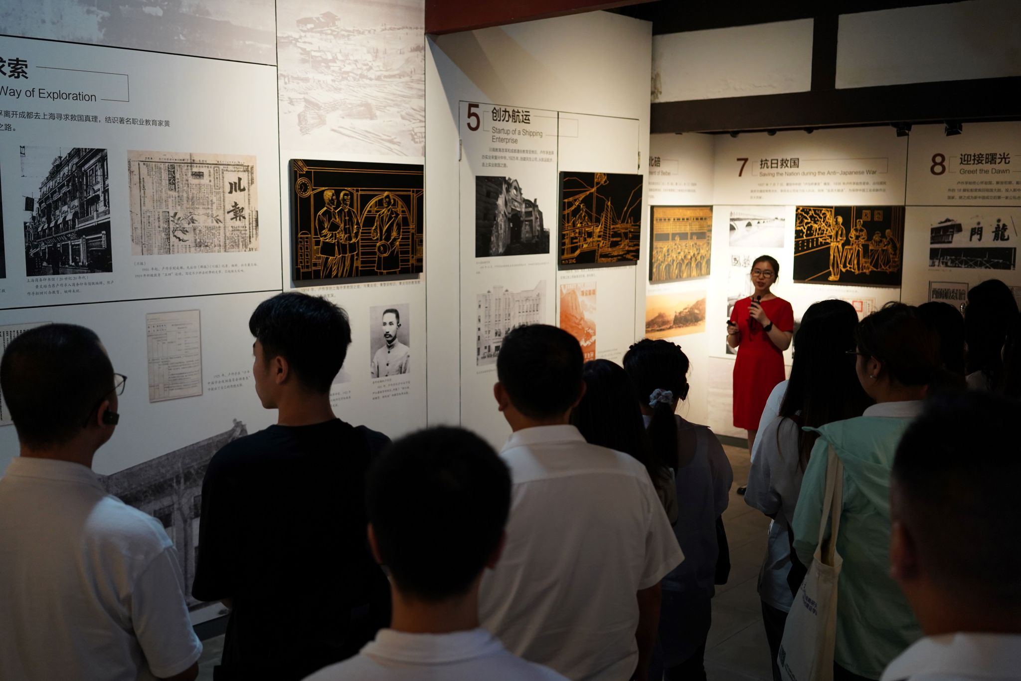 8月30日上午,学员前往北碚的卢作孚纪念馆进行现场参观。学员们观摩了卢作孚与民生公司的相关文物影像,通过讲解员热情而生动的讲解,加深了对卢作孚“革命救国”“教育救国”“实业救国”三大思想实践的认识,进一步感受到了卢作孚的爱国情怀与智慧担当。