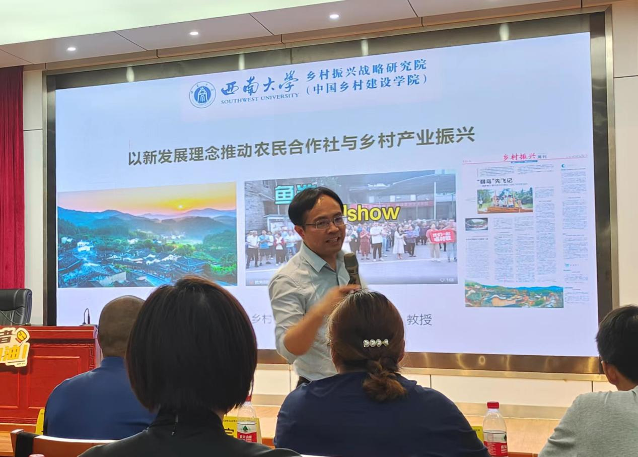 晚上,76net必赢官网副院长潘家恩教授以城乡融合推进合作社工作为主题展开专题讲座。倡导以新发展理念推动农民合作社与乡村产业振兴。
