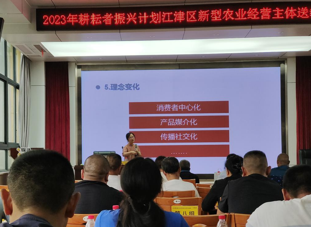 江津区农村经济经营管理站站长方清涛老师结合本区农业发展,从土地、销售、农机、规范发展等方面,结合常见问题和经验做了讲解。