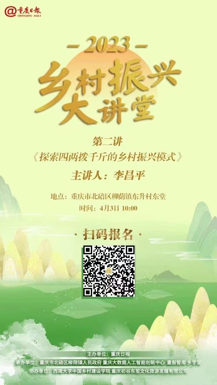 据悉,当天上午,李昌平还赴北碚区东升村,为《重庆日报》“乡村振兴大讲堂”做了以《探索四两拨千斤的乡村振兴模式》为题的主旨演讲。讲座以线上直播的方式面向社会各界举行,取得热烈反响!