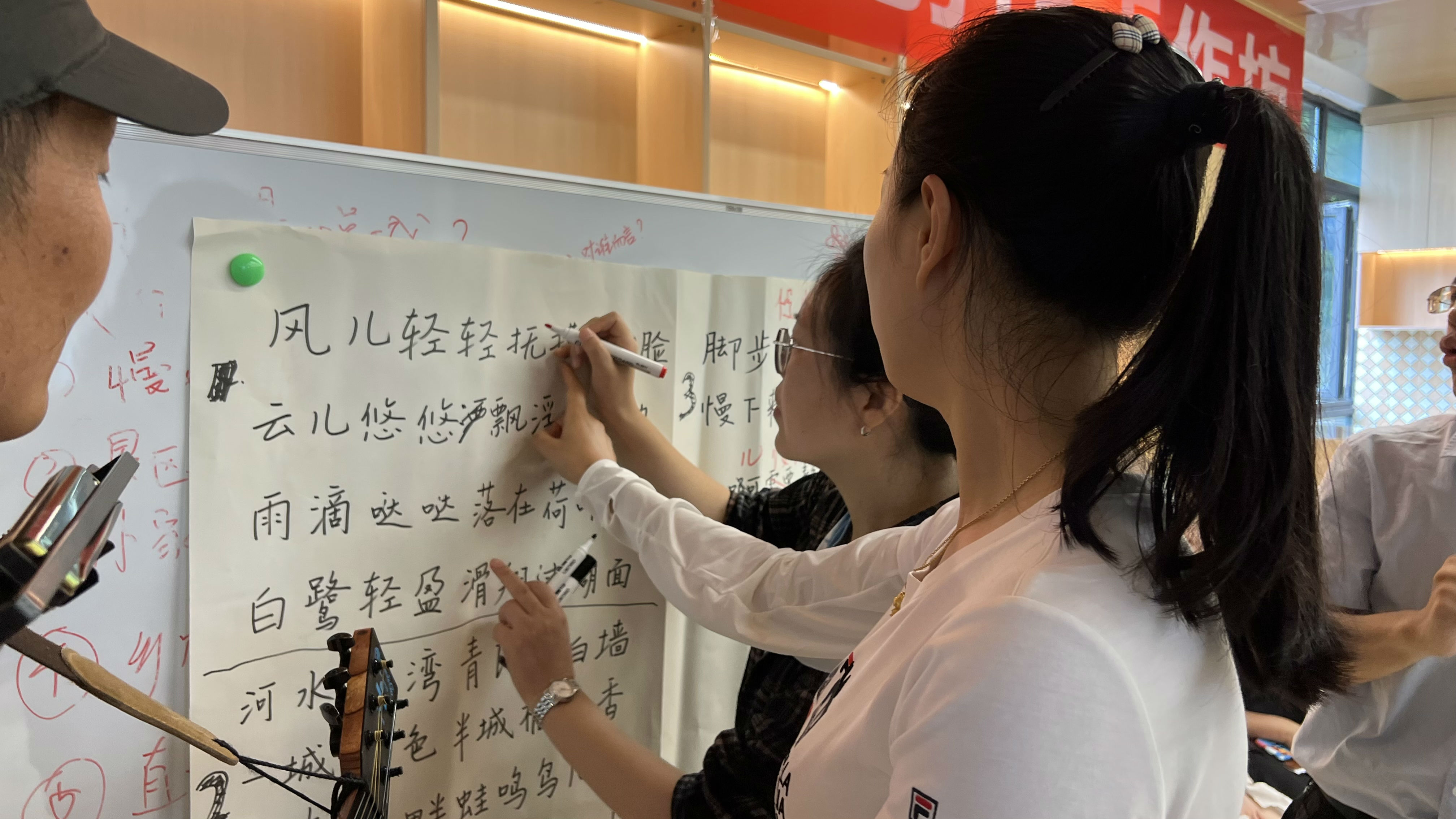 经过大家的字字斟酌,慢城之歌定下了歌词和曲调,最后由参与集体创作的所有成员投票选出歌名《念慢城——长寿慢城之歌》。村民袁淑君说:“我从来没有参加过这种自己创作歌曲的活动,很开心、很幸福,感谢孙恒老师带我们一起创作慢城之歌。”