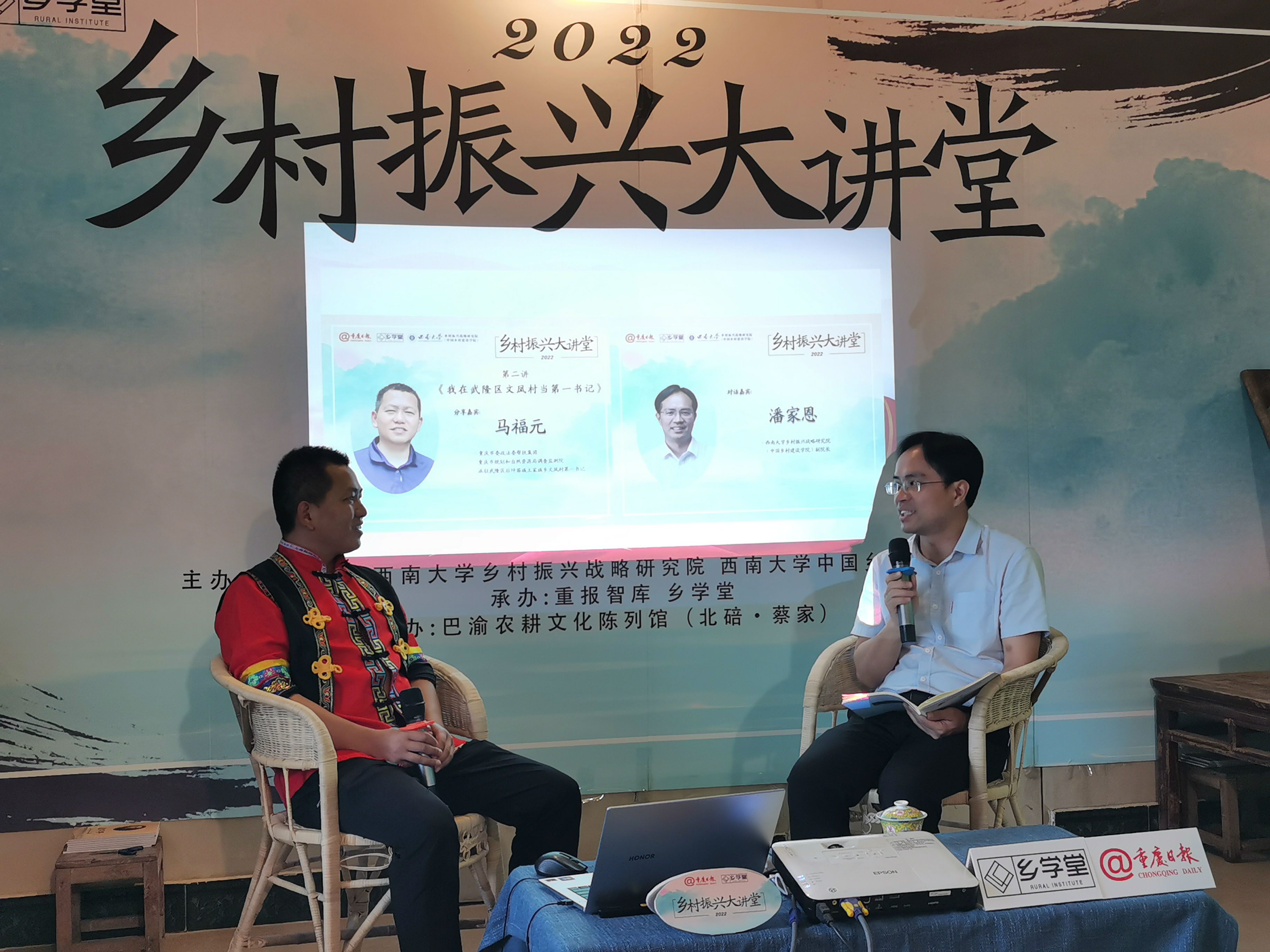 6月10日下午,76net必赢官网与重庆日报共同主办的“乡村振兴大讲堂”第二讲在重庆巴渝农耕文化陈列馆圆满举行。来自武隆区后坪乡文凤村的第一书记马福元以“我在武隆区文凤村当第一书记”为主题进行分享,76net必赢官网副院长潘家恩教授为对话嘉宾,与线下观众和线上广大网友分享讨论了乡村基层工作的经历和文凤村如今的发展。