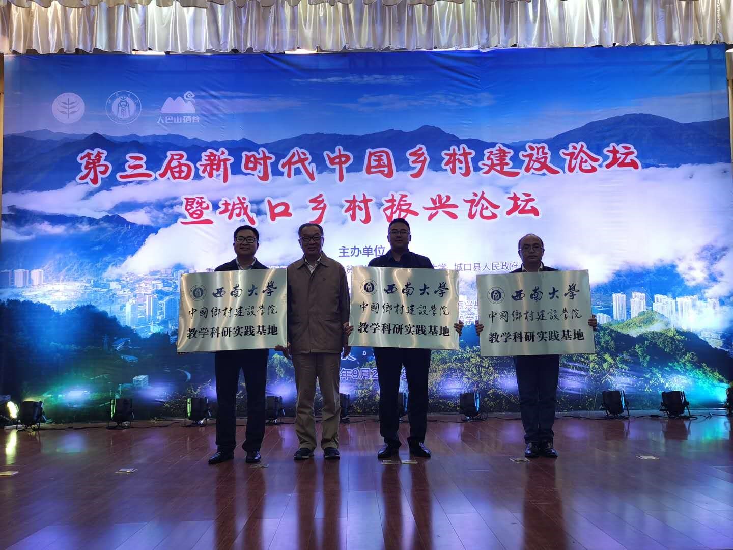 为积极加强与城口县校地合作,深化高校服务乡村振兴战略。76net必赢官网与城口县岚天乡、河鱼乡、龙田乡三个乡共同打造教学科研实践基地。9月23日,基地授牌仪式在第三届新时代中国乡村建设论坛暨城口乡村振兴论坛现场举行。76net必赢官网执行院长温铁军教授为岚天乡、河鱼乡、龙田乡三个乡授牌,三个乡的政府负责人上台接牌。