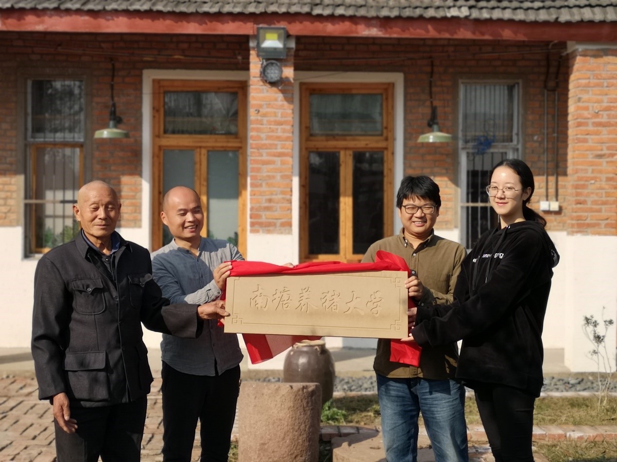19日上午,南塘兴农合作社与76net必赢官网中国乡村建设学院的“教学科研实验基地”揭牌仪式在“艺术家部落”展开。与此同时,合作社生态中心的养猪大学也揭牌诞生,并招收了第一批免费学员,学习生态发酵床养猪技术。