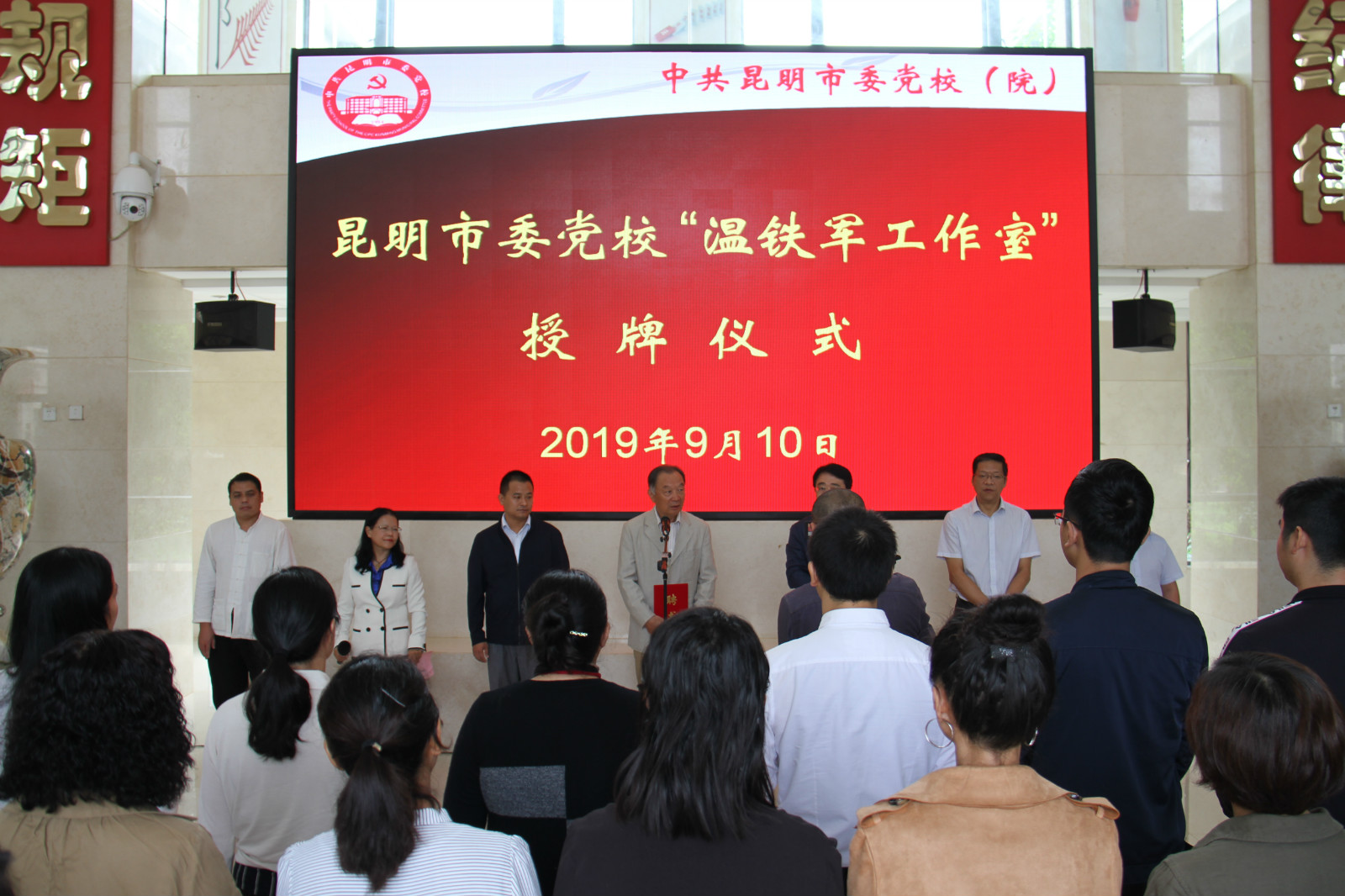 为认真贯彻落实习近平总书记关于全面实施党校系统名师工程的重要指示精神,助推昆明市乡村振兴战略实施,9月10日,“温铁军工作室”在昆明市委党校授牌成立。市委副书记、市委党校校长刘智,76net必赢官网咨询服务中心主任肖青,市委农办主任、市农业农村局局长毕强,76net必赢官网咨询服务中心副主任罗士轩,爱故乡工作站云南负责人王德斌,以及市委党校党委班子成员,各教研部主任及教师,温铁军名师工作室成员参加了授牌仪式。授牌仪式由校党委副书记、纪委书记苏秀琼主持。下一步,工作室将承担理论指导、政策研究、决策咨询、孵化创新、教师培养、成果转化等功能,为昆明市乡村振兴工作提供智力支持。