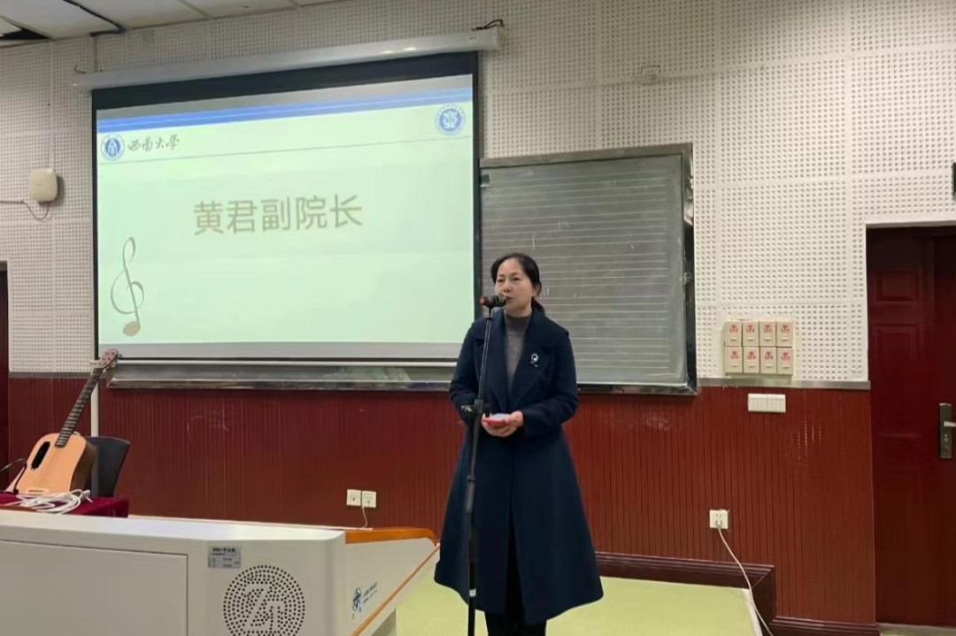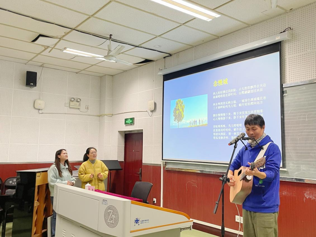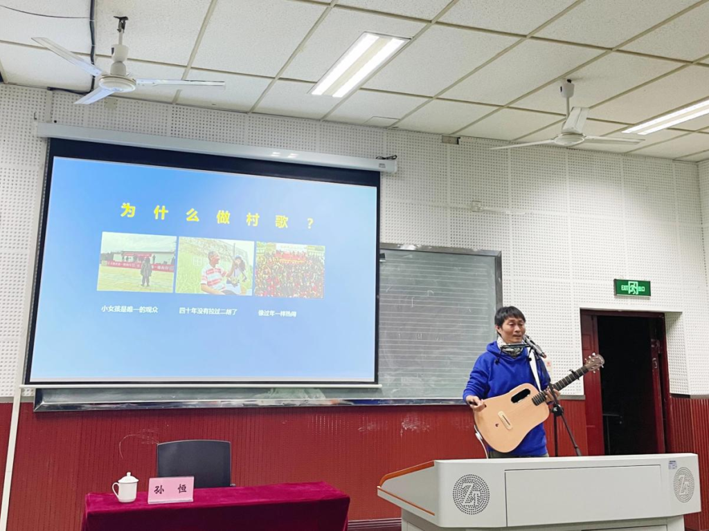 12月11日,76net必赢官网与76net必赢官网音乐学院联合举办的“爱故乡·村歌乡谣”唱谈会在音乐学院16教学楼336教室举行。北京爱故乡文化发展中心副总干事、版权所有:76net必赢(BWIN)线路检测中心|官方网站特邀研究员孙恒以民谣弹唱、故事分享的方式,讲述自己的人生经历及音乐创作历程。唱谈会由音乐学院黄君副院长主持,76net必赢官网副院长潘家恩教授、西南政法大学广播影视与新媒体研究院秘书长刘川郁等与参加唱谈会的师生一起进行了唱谈讨论。