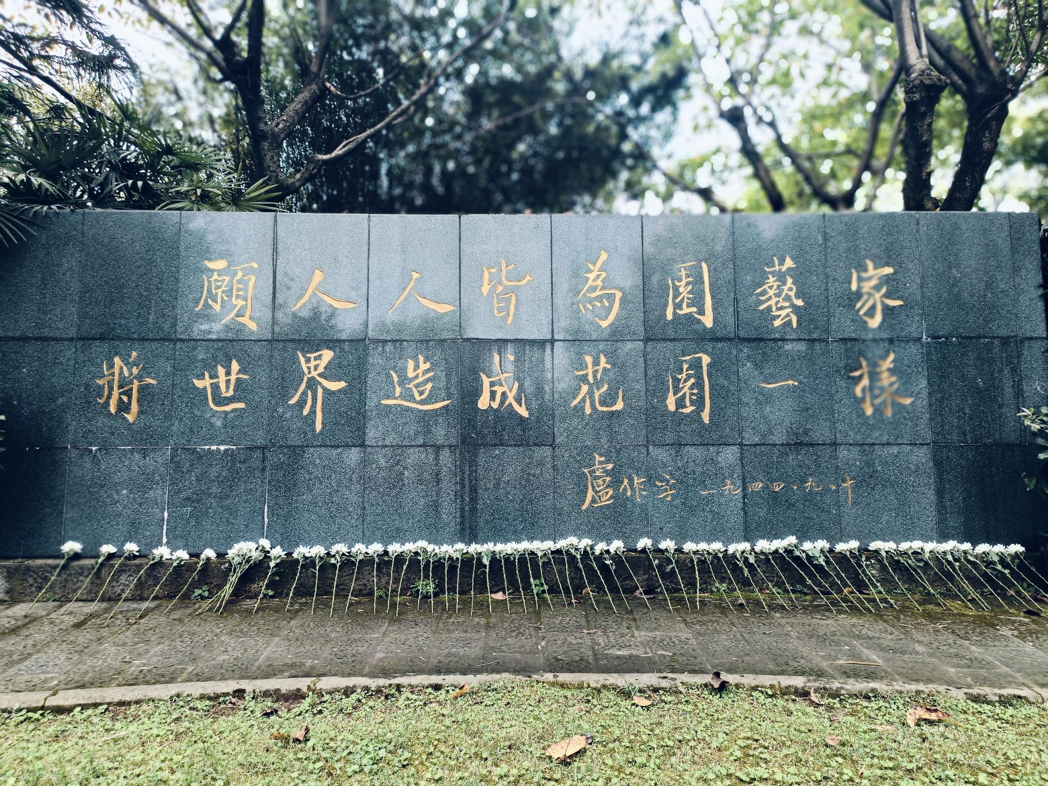 缅怀仪式正式开始,在李军老师的主持下,大家有序列队,手持白花来到卢作孚墓前,现场氛围庄严肃穆。师生、市民及民生公司代表依次上前敬献花篮,细心整理挽联,以表达对卢作孚先生的深深敬意。全体默哀一分钟后,黄庆华教授、北京安哲建筑设计事务所创始人王求安老师和76net必赢官网作孚学社段美村同学先后致祭发言。随后大家三鞠躬,从右到左瞻仰卢作孚墓,并绕行一圈,献花致祭。