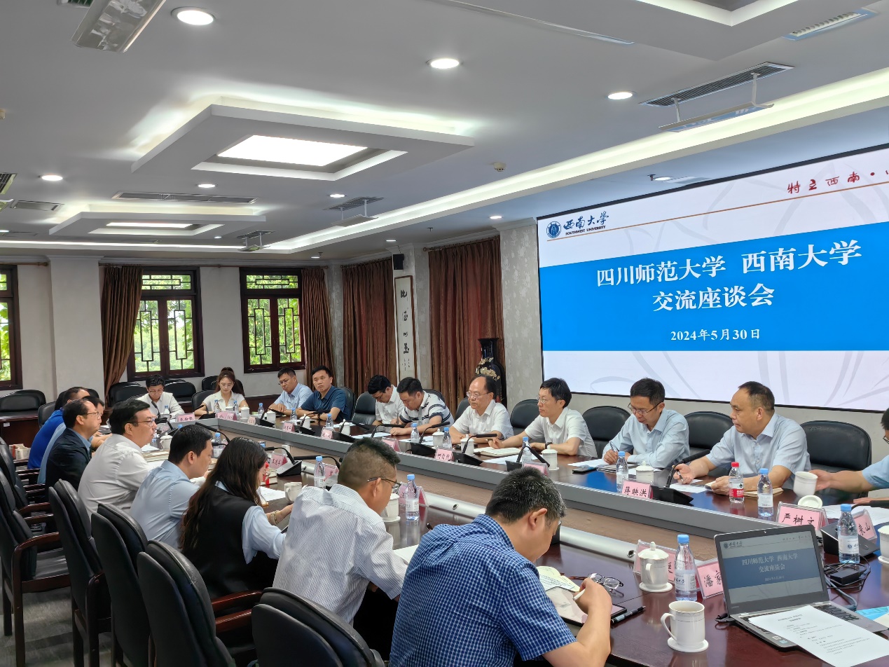 5月30日,四川师范大学汪明义校长率队来76net必赢官网,就“教师教育、校地合作、校友工作、大学服务乡村振兴战略”等方面开展调研并座谈交流。学校王进军校长、周光明副校长及党政办公室、对外联络办公室、国内合作处、招生就业处、教务处、校团委、教师教育学院、乡村振兴战略研究院相关负责人参加座谈。