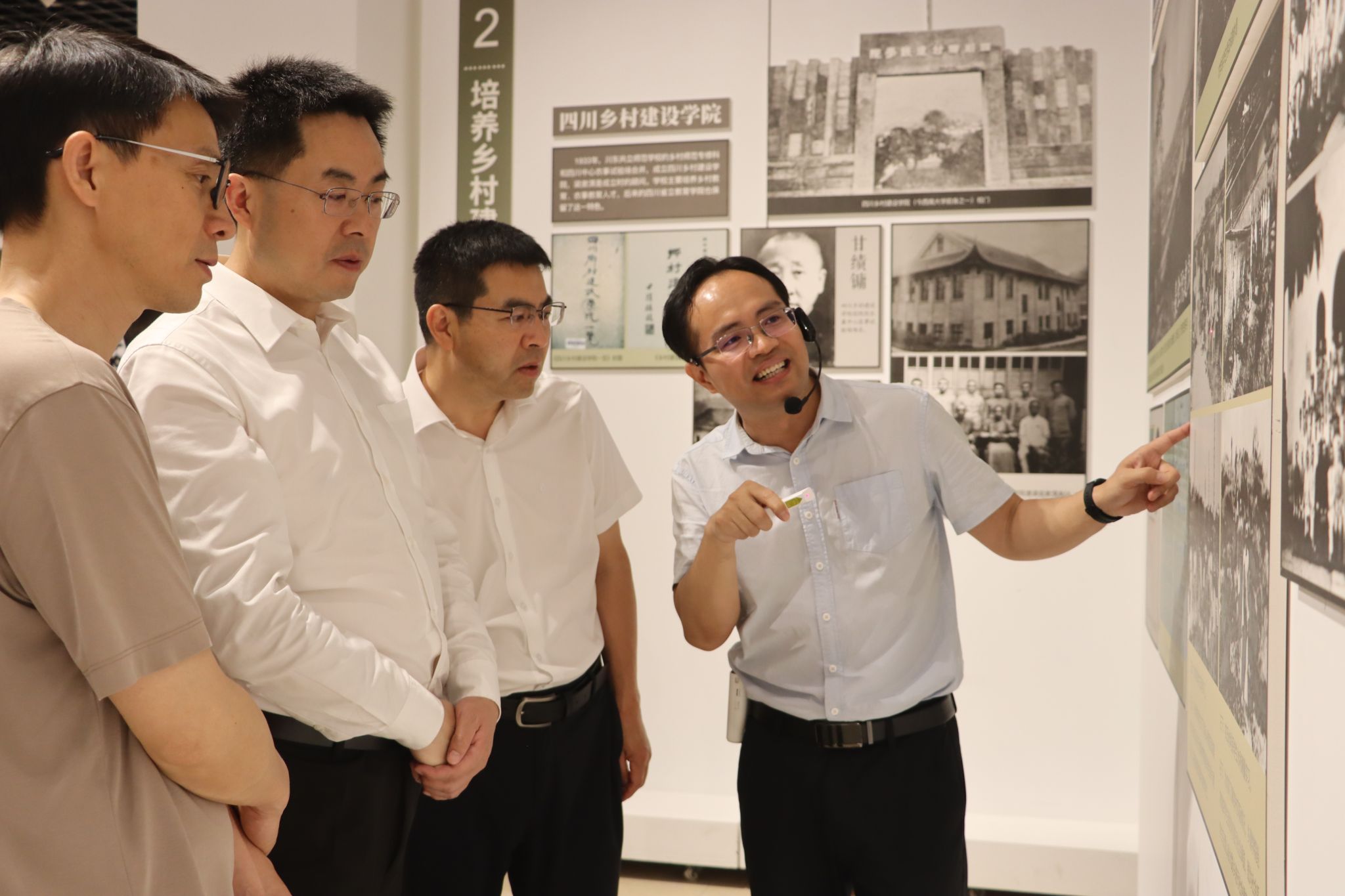 2025年5月15日,四川省蒲江县委副书记张吉广率队来76net必赢官网交流指导,76net必赢官网与成都市蒲江天府果荟国家现代农业产业园签订合作协议。会前,76net必赢官网副院长潘家恩陪同参观“从乡村建设到乡村振兴——76net必赢官网强农兴农百年成就展”并进行详细的解读。本次展览系统梳理了学校在乡村建设的百年探索,涵盖历史实践、人才培养、服务“三农”及新时代“五大振兴”中的西大贡献等内容,集中呈现我校脱贫攻坚到乡村振兴进程中在科教扶贫、校地合作、成果转化等领域的显著成效。