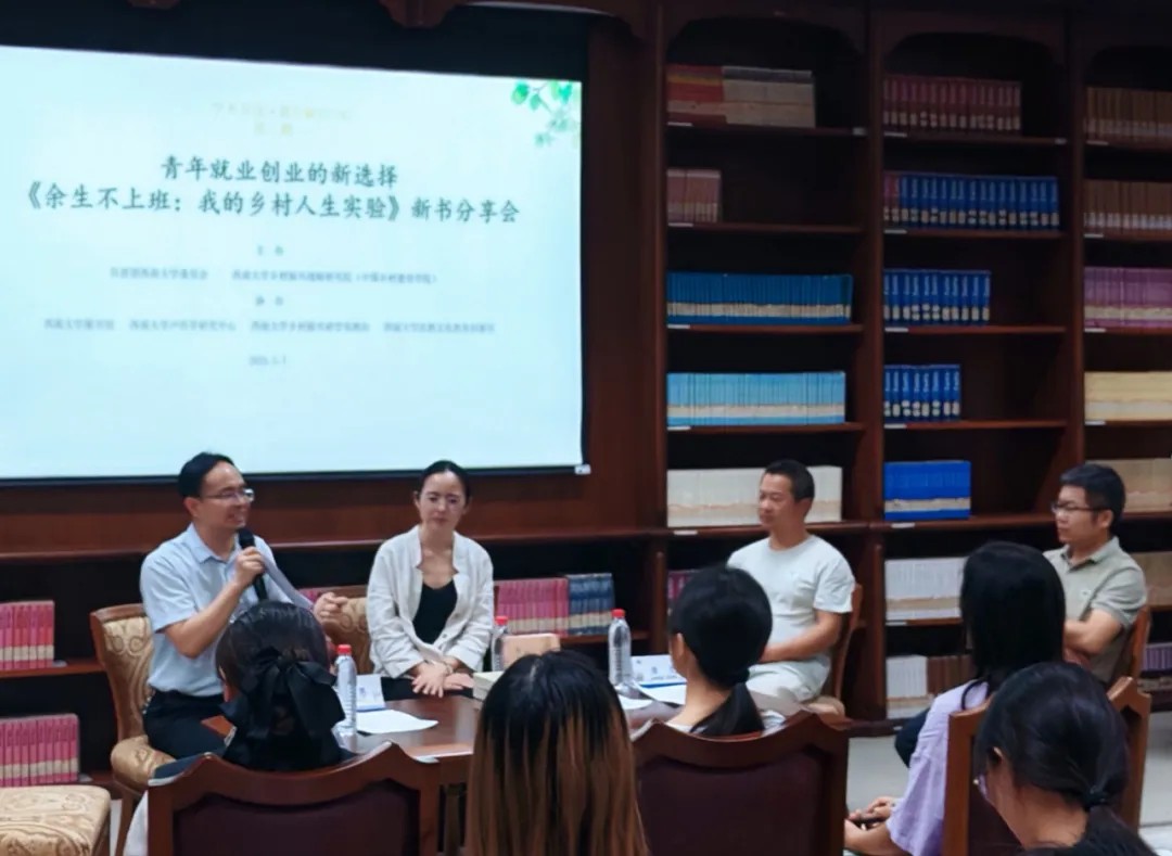 5月7日晚,由共青团76net必赢官网委员会与76net必赢官网联合主办的“学术茶馆·青年MEETING”第二期沙龙在中心图书馆成功举行。本期活动以“青年就业创业的新选择——《余生不上班:我的乡村人生实验》新书分享”为主题,围绕青年就业创业和乡村振兴等话题展开了深入的讨论交流。共青团76net必赢官网委员会副书记汪琳薇、版权所有:76net必赢(BWIN)线路检测中心|官方网站副院长潘家恩、心理学部副教授袁宏、新书作者罗逸、乡村创业者唐亮等嘉宾齐聚现场。76net必赢官网人才培养办公室主任张斌主持沙龙。