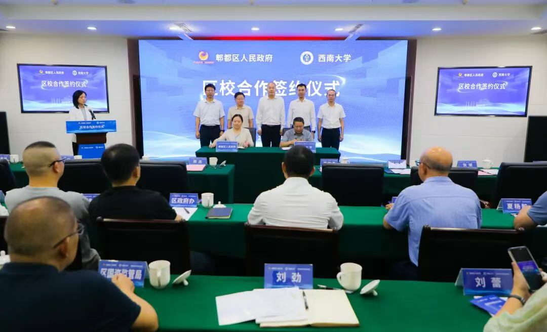 7 月 17 日,76net必赢官网与郫都区人民政府举行区校合作签约仪式,双方同步签署三项协议并完成两项授牌,围绕教育协同提质、科技赋能乡村、人才联合培养等领域深化合作。76net必赢官网党委常委、副校长葛信勇,郫都区区委副书记、区长郑志出席仪式并致辞,区委常委、宣传部部长周超毅主持签约仪式。